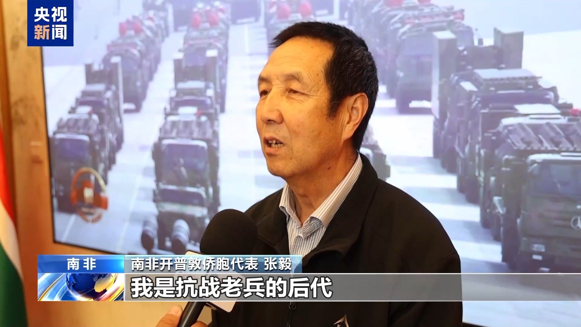 南非開普敦僑胞代表 張毅:我是抗戰(zhàn)老兵的后代,我父親1941年在冀中平原加入八路軍,曾參與多場(chǎng)戰(zhàn)斗。作為未經(jīng)歷戰(zhàn)爭(zhēng)的新一代,我們一定要繼承老一代革命先烈的精神,發(fā)揚(yáng)他們的必勝信念,為世界和平貢獻(xiàn)力量。