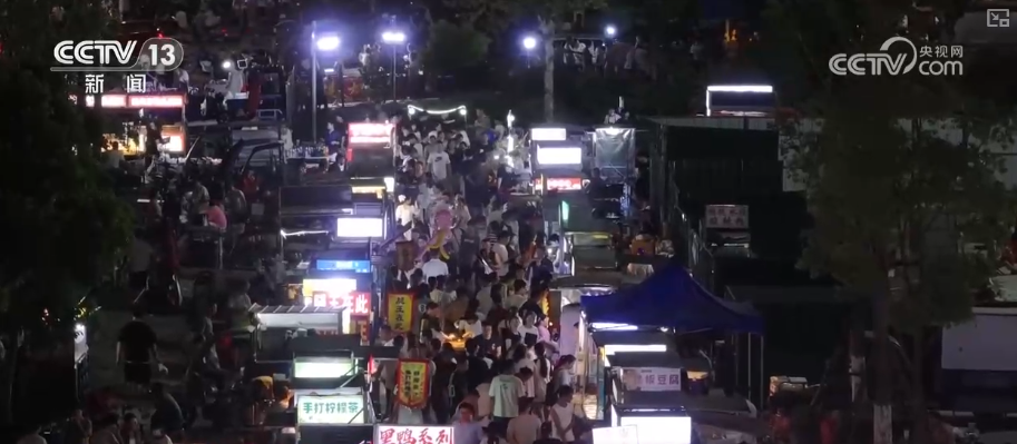 每天,當(dāng)夜幕降臨,天門北湖夜市就會準(zhǔn)時“開攤”,300多個攤位依次亮起霓虹招牌,香氣繚繞,叫賣聲此起彼伏。記者行走其中,發(fā)現(xiàn)一個比夜市更引人注目的一個現(xiàn)象,就是穿梭其中的年輕父母格外多,還有不少二孩甚至是三孩家庭。