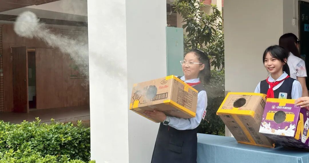 9月1日,在西安市浐灞第二小學(xué)各年級一樓的未來科學(xué)院里,“空氣的力量”實驗正在精彩上演:學(xué)生們手持自制空氣炮,輕輕一推,“砰”的一聲,煙霧圓環(huán)隨即而出,在現(xiàn)場“哇”聲一片里,感受科學(xué)的力量和魅力。