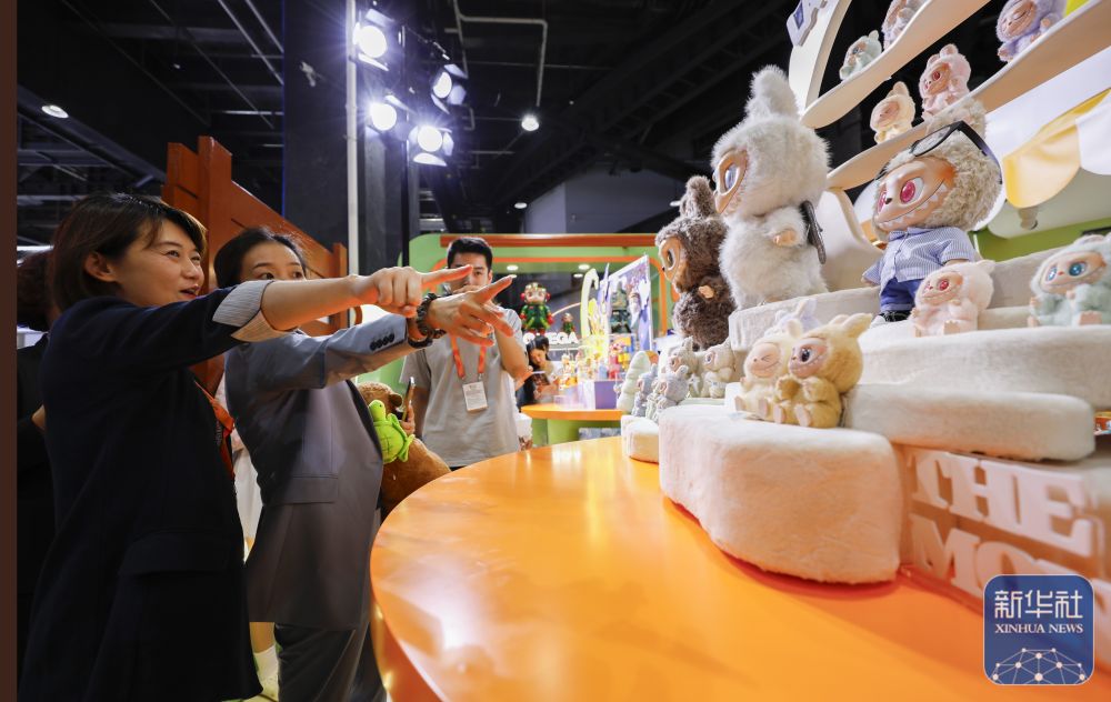 9月10日,觀眾在服貿(mào)會主題展區(qū)泡泡瑪特展臺前參觀。新華社記者 常能嘉 攝