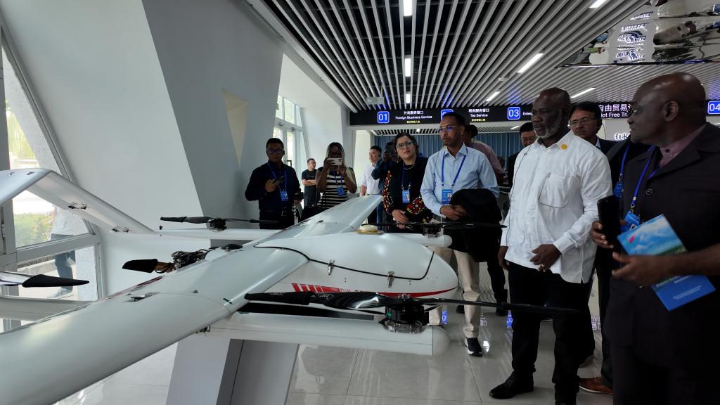 9月13日,外國議員在中國(新疆)自由貿(mào)易試驗(yàn)區(qū)喀什片區(qū)展廳低空經(jīng)濟(jì)展區(qū)參觀。 新華社記者 王澤宇 攝