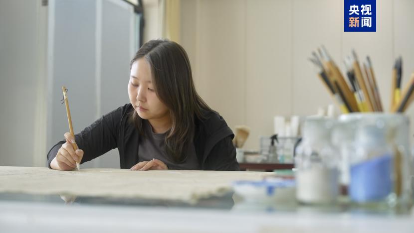 “年輕一代在臨摹創(chuàng)作的過(guò)程中,會(huì)刻下屬于我們的時(shí)代烙印,展現(xiàn)不同的審美與藝術(shù)理念?!笨俗螤柺哐芯克佬g(shù)師艾潤(rùn)說(shuō)。她和同事們用細(xì)致入微的筆觸,為壁畫延續(xù)生命,讓石窟在新時(shí)代綻放新的光彩。