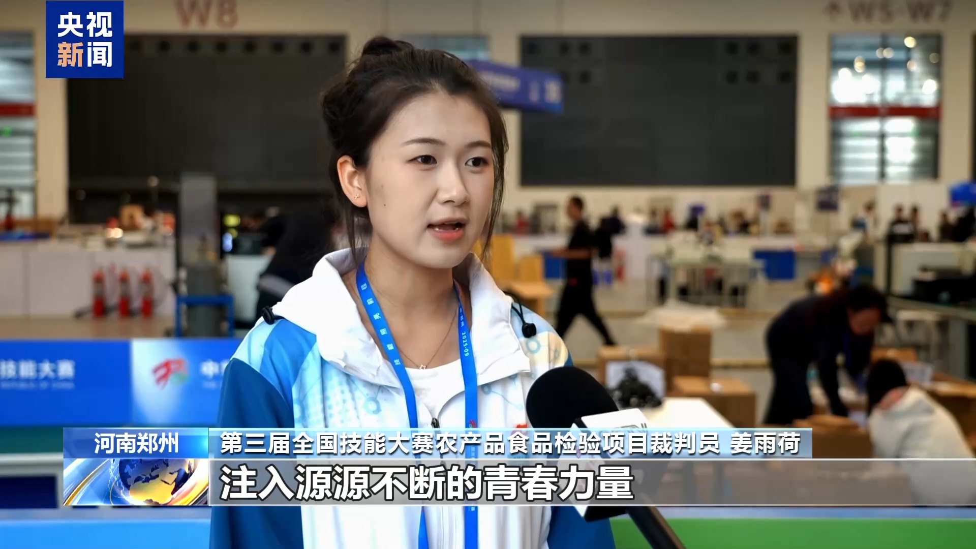 第三屆全國技能大賽農(nóng)產(chǎn)品食品檢驗項目裁判員 姜雨荷:我們不僅是職業(yè)教育的受益者,更是技能強國的建設(shè)者,我希望會有更多像我一樣的青年人,投身職業(yè)教育,為我們技能強國的建設(shè),注入源源不斷的青春力量。