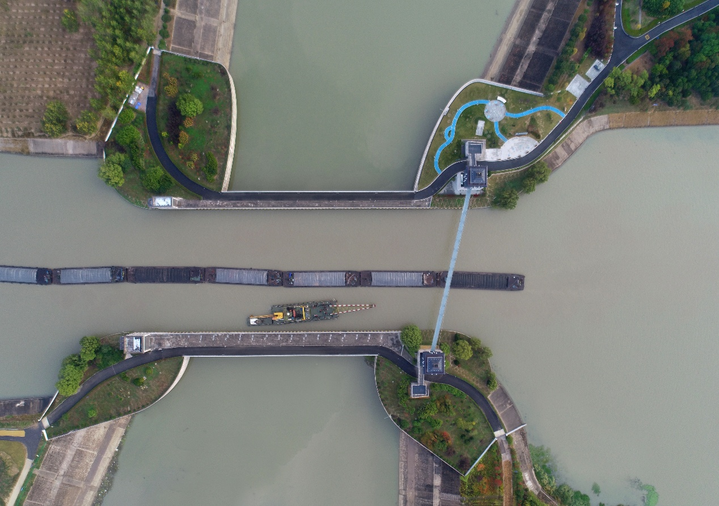 作為淮河入海水道二期工程的核心節(jié)點(diǎn),淮安水利樞紐大運(yùn)河水上立交建成便是“亞洲最大水立交”。京杭大運(yùn)河、蘇北灌溉總渠、淮河入海水道,三條載入史冊(cè)的人工水道在此交匯,“兩橫一縱”的格局間,藏著建設(shè)者們最棘手的難題。“二期工程要緊鄰布置,水系又密、水頭還高?!蓖鹾橛裉直葎澲鴺屑~布局,“我們先做好基坑防滲工作,再通過(guò)開挖臨時(shí)導(dǎo)航明渠來(lái)保障運(yùn)河航運(yùn),工程在緊鑼密鼓地推進(jìn)?!?/p>