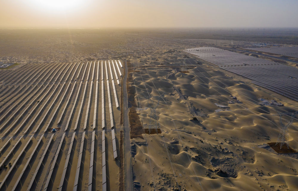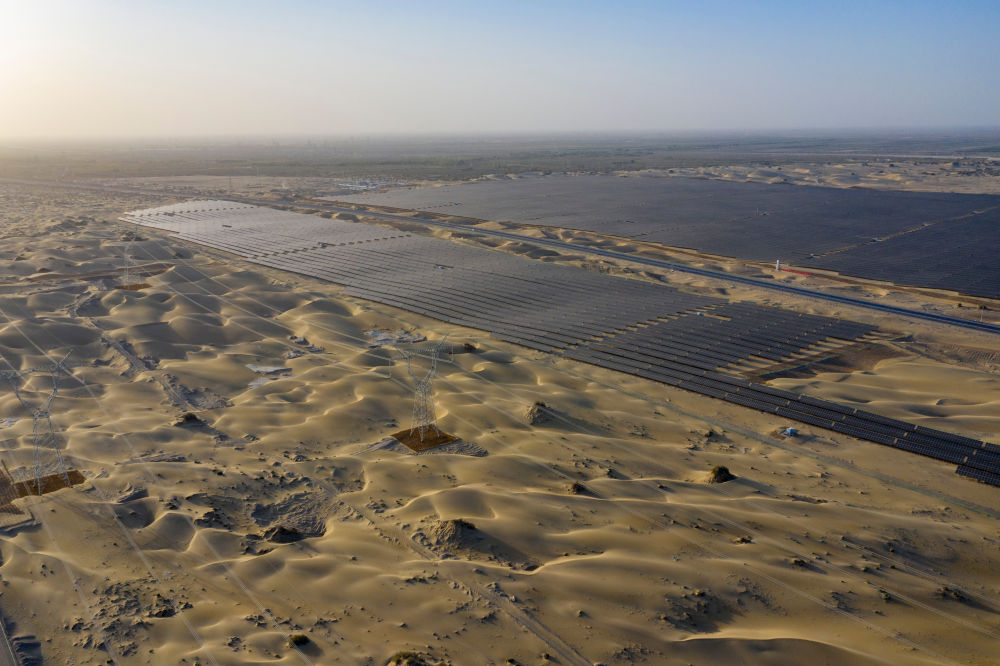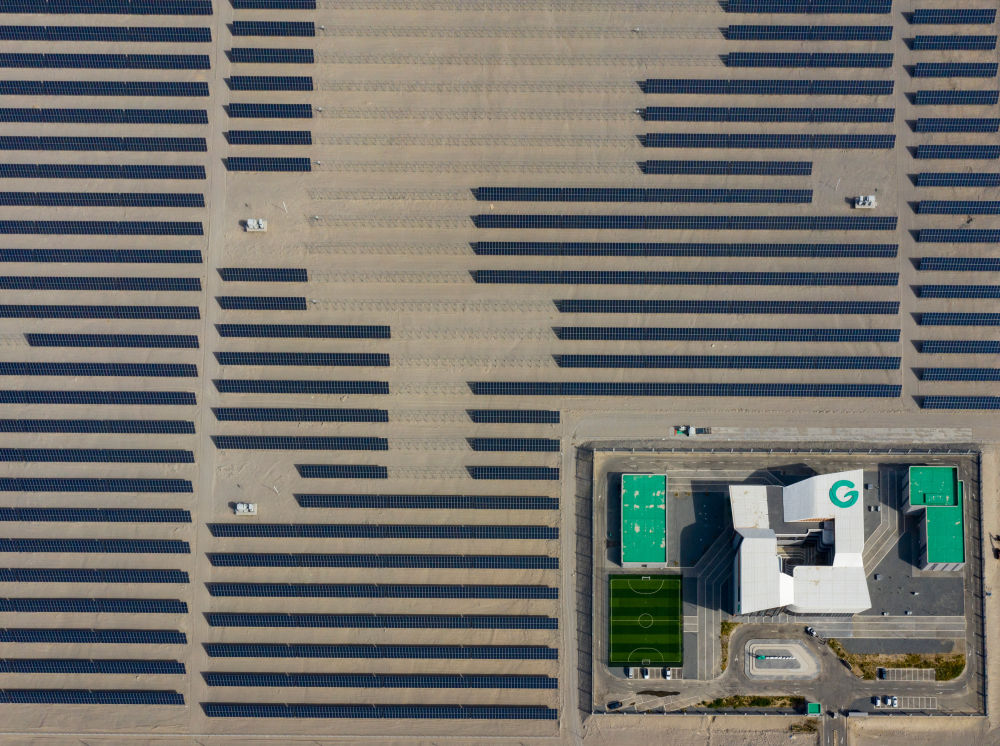 9月22日在新疆巴音郭楞蒙古自治州若羌縣拍攝的中國綠發(fā)新疆中綠電若羌400萬千瓦光伏項目(無人機(jī)照片)。該項目每年可發(fā)電69.08億千瓦時,滿足南疆200萬戶家庭用電需求,減排208.24萬噸煤耗。