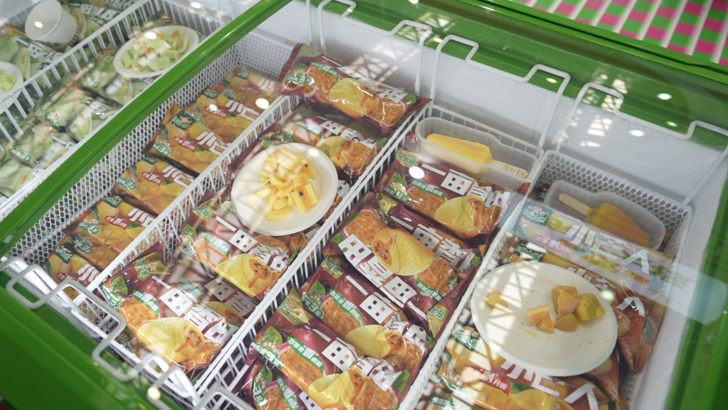 在東北大板品牌展區(qū),蜜瓜、芒果、百香果造型的水果味冰淇淋吸引了眾多客商品嘗,該系列產(chǎn)品遠(yuǎn)銷新西蘭、加拿大、馬來西亞、新加坡等國家和地區(qū)。