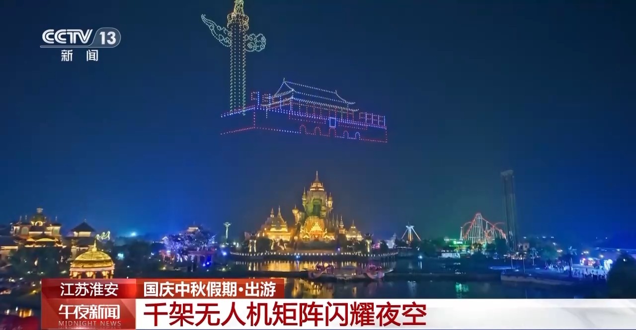 夜幕降臨,在江蘇淮安西游樂(lè)園,1600架無(wú)人機(jī)同步升空,組成“我愛(ài)你中國(guó)”、天安門、璀璨中國(guó)等造型圖案,科技與光影的碰撞,譜寫了一曲璀璨奪目的 “空中詩(shī)篇”。全新升級(jí)的“國(guó)慶煙花大會(huì)”更是將現(xiàn)場(chǎng)氛圍推向高潮。絢爛的煙花與水幕交織相映,形成了一幅立體畫卷,營(yíng)造出了既浪漫又熱烈的節(jié)日氛圍。