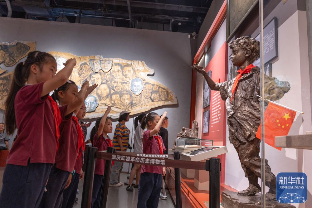 ↑ 10月6日,來自渝北巴蜀小學(xué)二年級九班的同學(xué)們在重慶歌樂山革命紀(jì)念館參觀。新華社記者 陳誠 攝