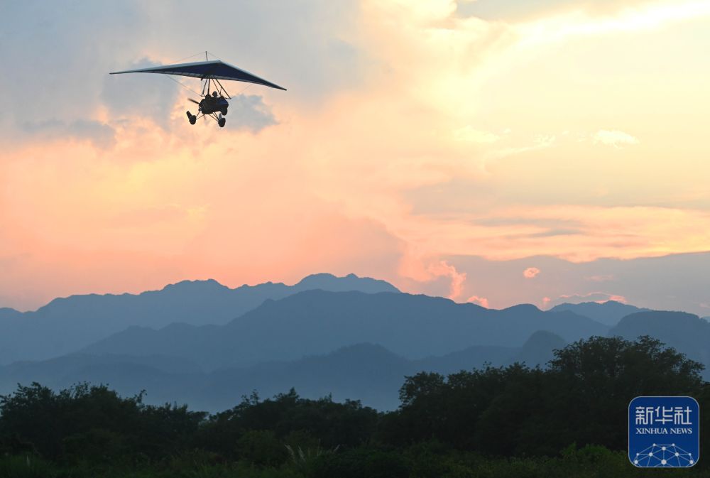 ↑ 10月6日,游客在浙江省金華市武義縣大斗山飛行營地乘坐動力三角翼。新華社發(fā)(張建成攝)