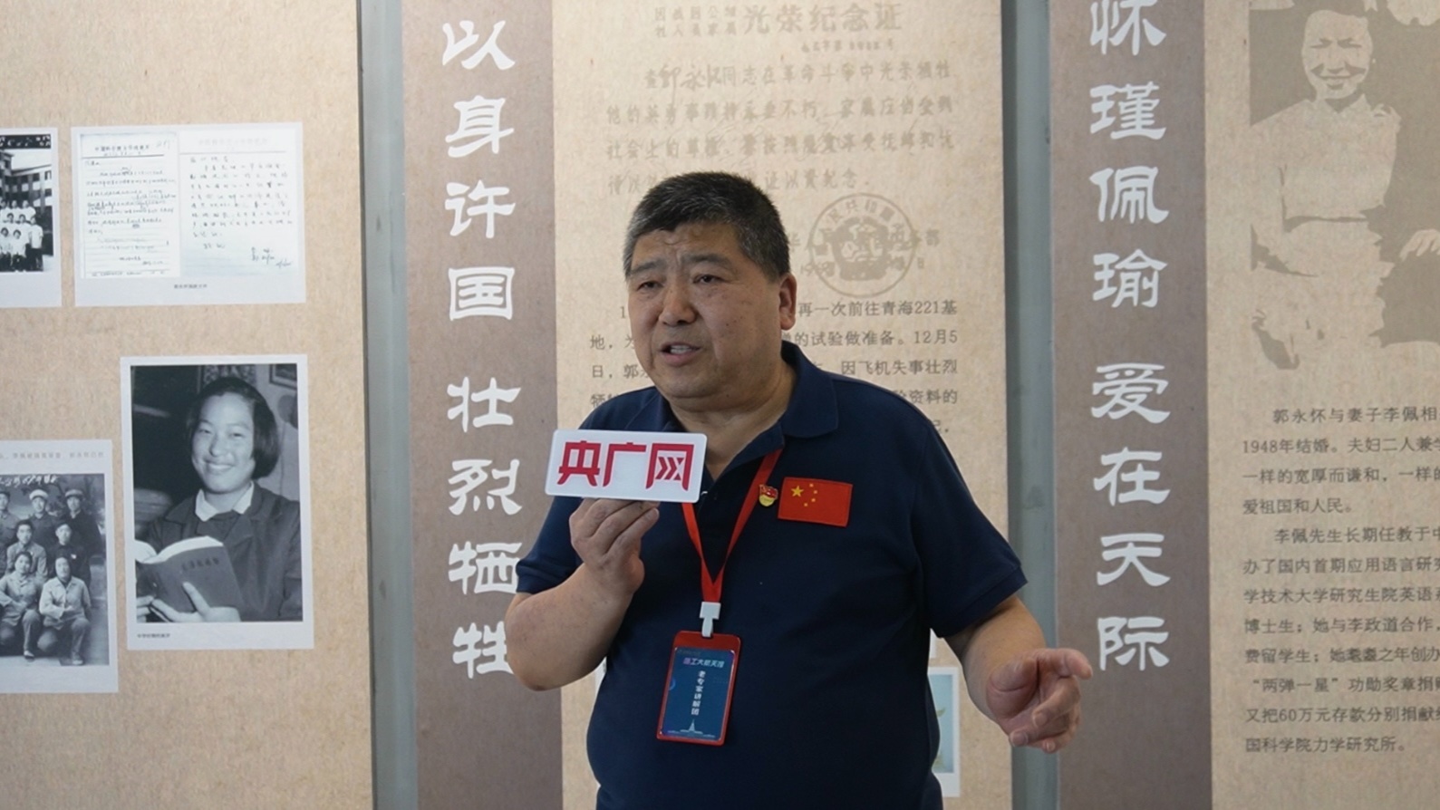 老專家志愿講解團(tuán)成員馮濤在講述“兩彈一星”功勛郭永懷事跡時動情落淚(央廣網(wǎng)發(fā) 張文 攝)