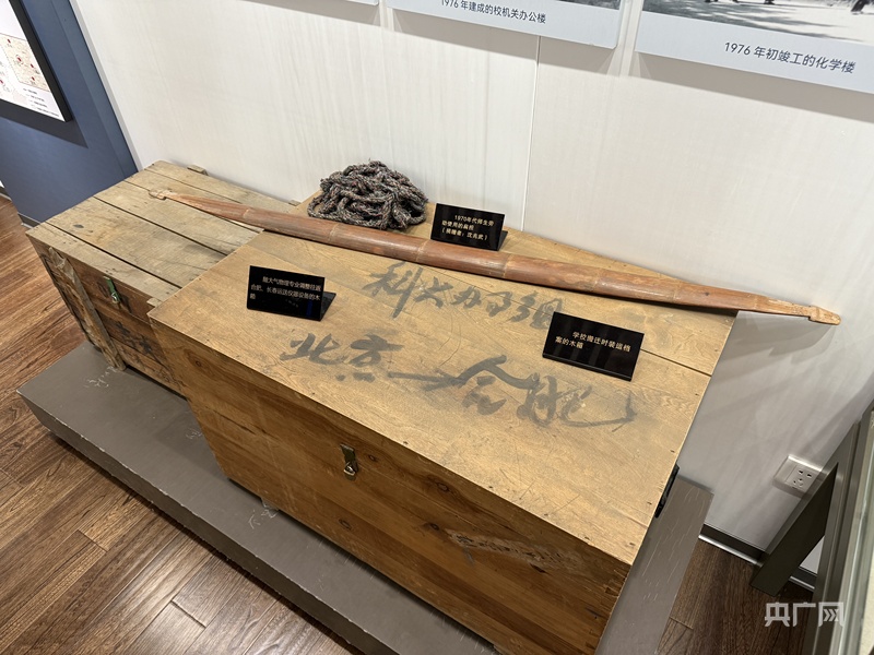 展柜中兩塊陳舊的紅色磚塊,銘刻著“史上最牛燒磚工”的故事。“當(dāng)時(shí),為了能盡快恢復(fù)科研和教學(xué)工作,中國科大師生親手燒制了建造化學(xué)樓的紅磚,其中很多老師、學(xué)生如今已經(jīng)成長為教授甚至院士,所以我們也經(jīng)常戲稱這群燒磚工為‘史上最牛燒磚工’?!蓖趺A介紹。
