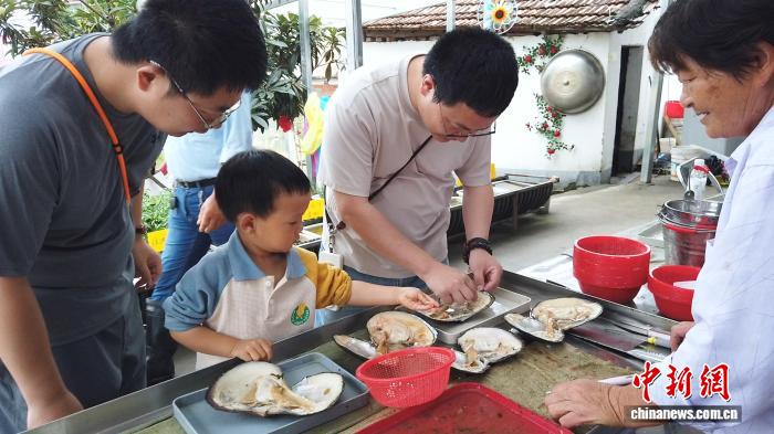 2025年6月,家長(zhǎng)與孩子正在進(jìn)行開(kāi)蚌取珠體驗(yàn)。曹丹 攝