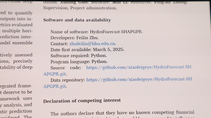 朱非林在學(xué)術(shù)研究中有一個(gè)特別的堅(jiān)持——公開分享自己的代碼。早在2017年,他就將防洪決策的模型代碼公開,美國(guó)、印度及國(guó)內(nèi)的學(xué)者紛紛與他聯(lián)系,在他開發(fā)的模型基礎(chǔ)上進(jìn)行深化研究,推動(dòng)了整個(gè)方向的發(fā)展。"水利行業(yè)是造福人民的事業(yè),不應(yīng)該有圍墻。"朱非林的想法很簡(jiǎn)單,一項(xiàng)技術(shù)只有被更多人使用、檢驗(yàn)和完善,才能發(fā)揮更大價(jià)值,更快推動(dòng)整個(gè)行業(yè)進(jìn)步。個(gè)人的工作如果能給其他研究者或工程單位帶來啟發(fā)和幫助,其意義就遠(yuǎn)超一篇論文本身。