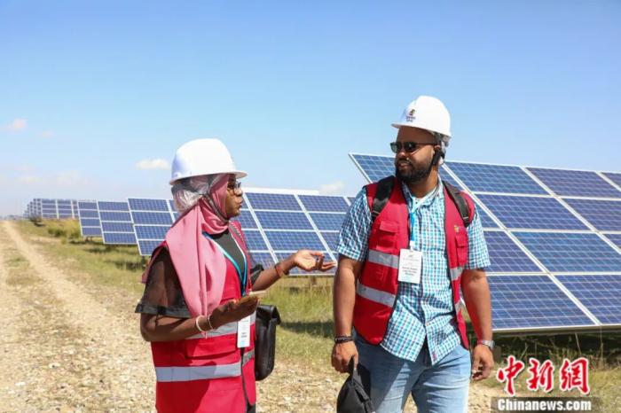 2025年9月12日,第九屆中非青年大聯(lián)歡代表團(tuán)和非洲記者團(tuán)一行來到青海省一光伏產(chǎn)業(yè)園區(qū),實(shí)地了解青海清潔能源發(fā)展。中新社記者 馬銘言 攝