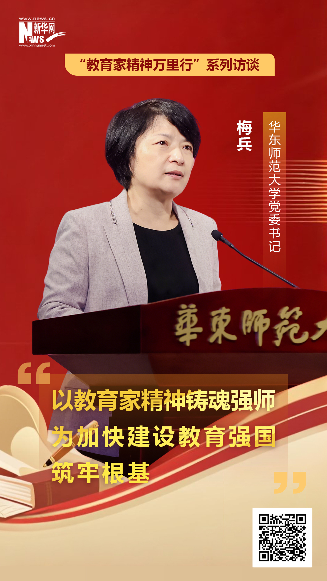 近日,華東師范大學(xué)黨委書記梅兵接受新華網(wǎng)專訪時(shí),系統(tǒng)闡釋了實(shí)施教育家精神鑄魂強(qiáng)師行動對高校教師的新要求、學(xué)校弘揚(yáng)教育家精神的創(chuàng)新舉措,以及高校筑牢教育家精神踐行主陣地、深化教師管理評價(jià)改革的路徑方向,為教育強(qiáng)國建設(shè)背景下的教師隊(duì)伍建設(shè)提供思路。