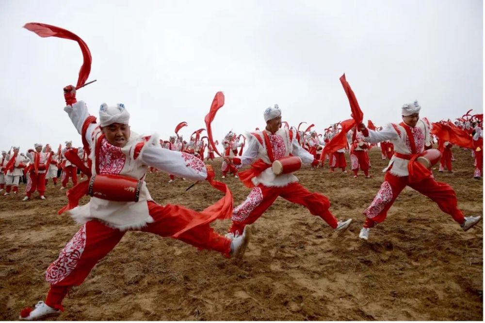 安塞腰鼓演出。新華社記者 劉瀟 攝