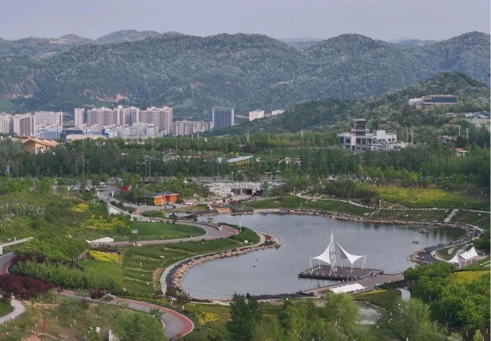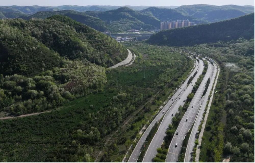 無人機(jī)視角下的延安滿眼翠綠。新華社記者 張博文 攝