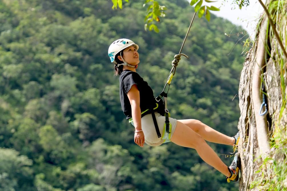 10月4日,游客在云南大理南澗彝族自治縣公郎鎮(zhèn)猛龍渡體驗(yàn)“攀巖”運(yùn)動(dòng)。新華社發(fā)(適志宏 攝)