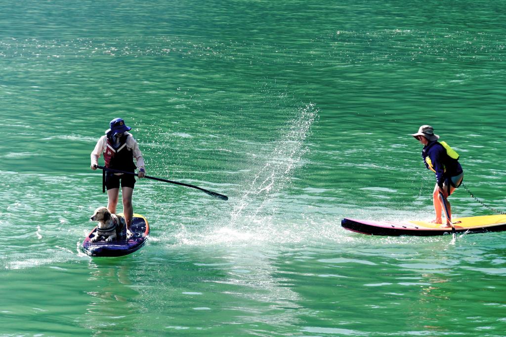 10月4日,游客在云南大理南澗彝族自治縣公郎鎮(zhèn)猛龍渡體驗(yàn)槳板。新華社發(fā)(適志宏 攝)