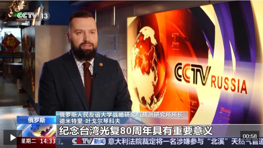 俄羅斯人民友誼大學(xué)戰(zhàn)略研究與預(yù)測研究所所長 德米特里·葉戈爾琴科夫:紀(jì)念臺灣光復(fù)80周年具有重要意義,象征著中國人民心向統(tǒng)一。戰(zhàn)勝日本軍國主義是世界反法西斯戰(zhàn)爭的重要組成部分,這一歷史應(yīng)該被銘記。