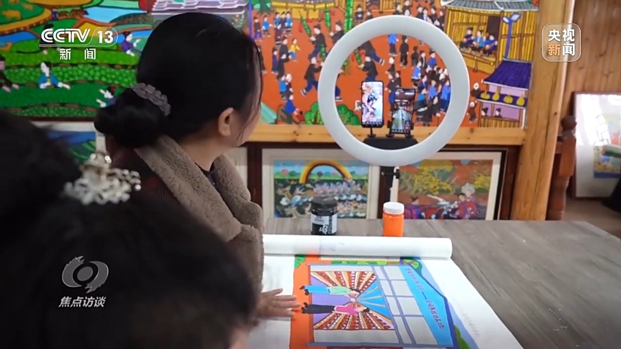 陳美美:我還記得我女兒一直問我,媽媽天上是什么?我說是飛機。你努力讀書,我以后要跟著你一起去坐飛機。我沒想到我女兒還沒長大,我就因為畫畫坐飛機去了北京。真的畫畫改變了我,也改變了我們家鄉(xiāng)。