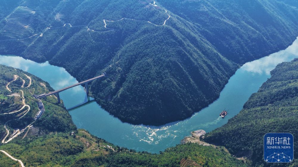 ↑ 10月31日,小灣東站下方的瀾滄江波光粼粼(無人機照片)。