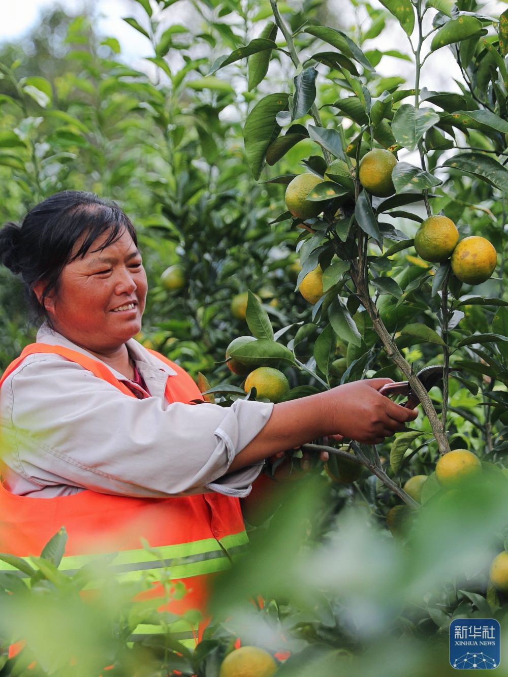 ↑ 10月30日,小灣東鎮(zhèn)居民在合作社的果園里勞作。