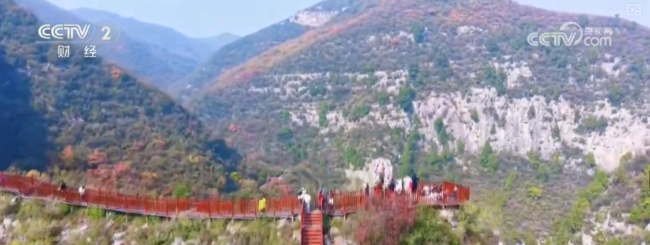 這里新落成的五彩步道全長(zhǎng)1300米,沿山脊蜿蜒鋪展,如一條絢爛彩帶鑲嵌于山間,每百米便有一處景致,步移景異。游客既能賞紅葉爛漫、覽太行雄姿,亦可于登高望遠(yuǎn)處邂逅一場(chǎng)秋日視覺盛宴。