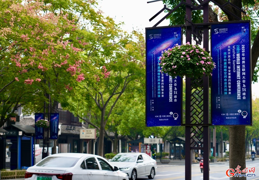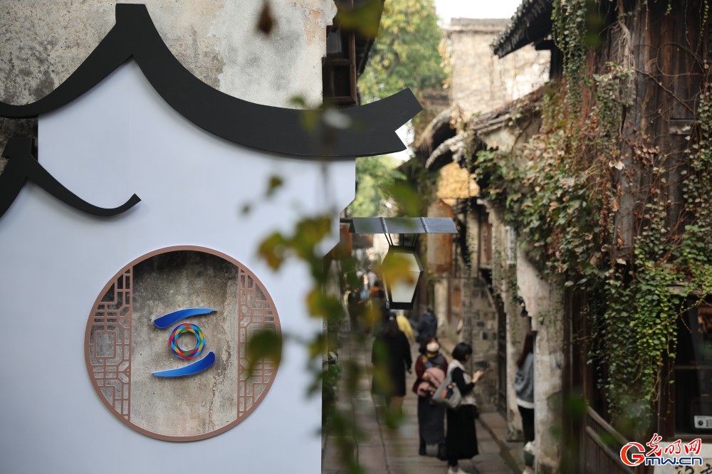 2025年11月5日,浙江烏鎮(zhèn),隨處可見的烏鎮(zhèn)峰會(huì)元素。