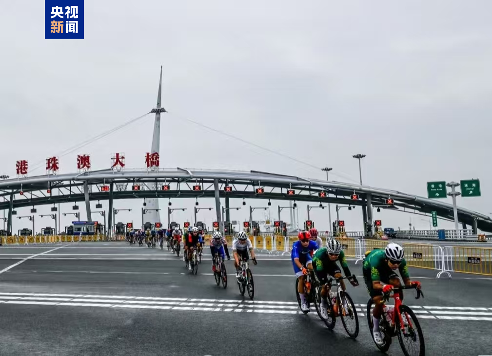 11月8日,全運(yùn)會(huì)歷史上首次跨境賽事——公路自行車男子個(gè)人賽在珠海鳴槍開賽。運(yùn)動(dòng)員們飛馳在港珠澳大橋上,在231.8公里的賽程中6次經(jīng)過口岸,卻實(shí)現(xiàn)了“零次停下、零秒等待”的無感通關(guān)。