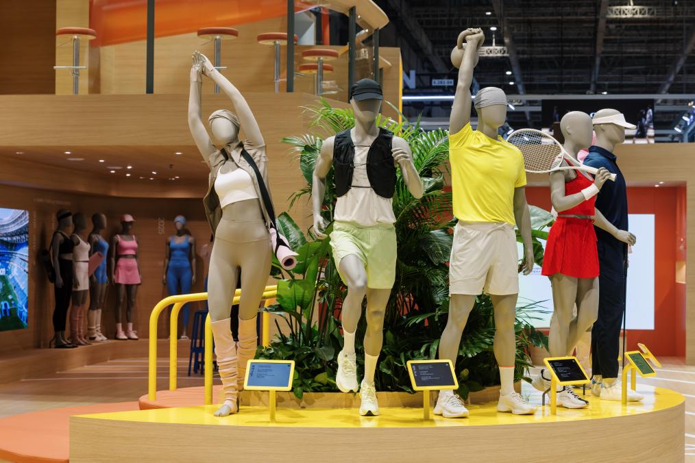露露樂蒙展臺以“好狀態(tài)趣動(dòng)場”為主題,展示品牌在瑜伽、跑步、訓(xùn)練、網(wǎng)球、高爾夫和日常出行六大品類的明星產(chǎn)品。受訪者供圖