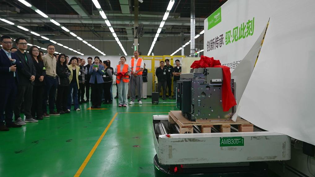 施耐德電氣全新升級的一款空氣斷路器產(chǎn)品在第八屆進(jìn)博會現(xiàn)場首秀,并于7日在其上海康橋工廠正式下線。受訪者供圖