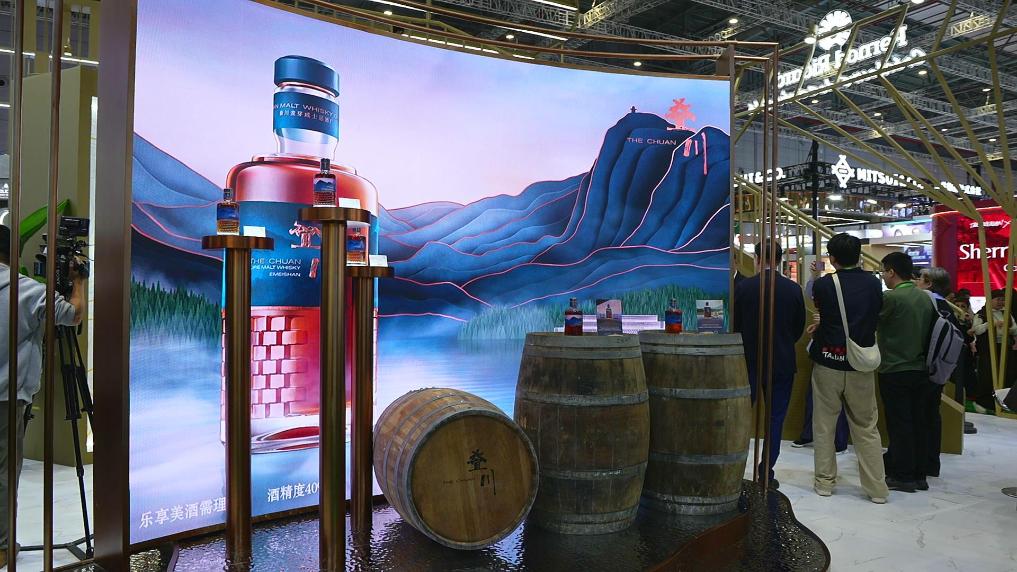 國際知名烈酒集團(tuán)將首款中國原產(chǎn)威士忌疊川放在了展臺“C位”。受訪者供圖
