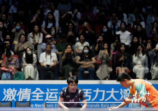 11月10日,全運會乒乓球男子單打比賽,觀眾在球員發(fā)球前暫停助威。董天健 攝