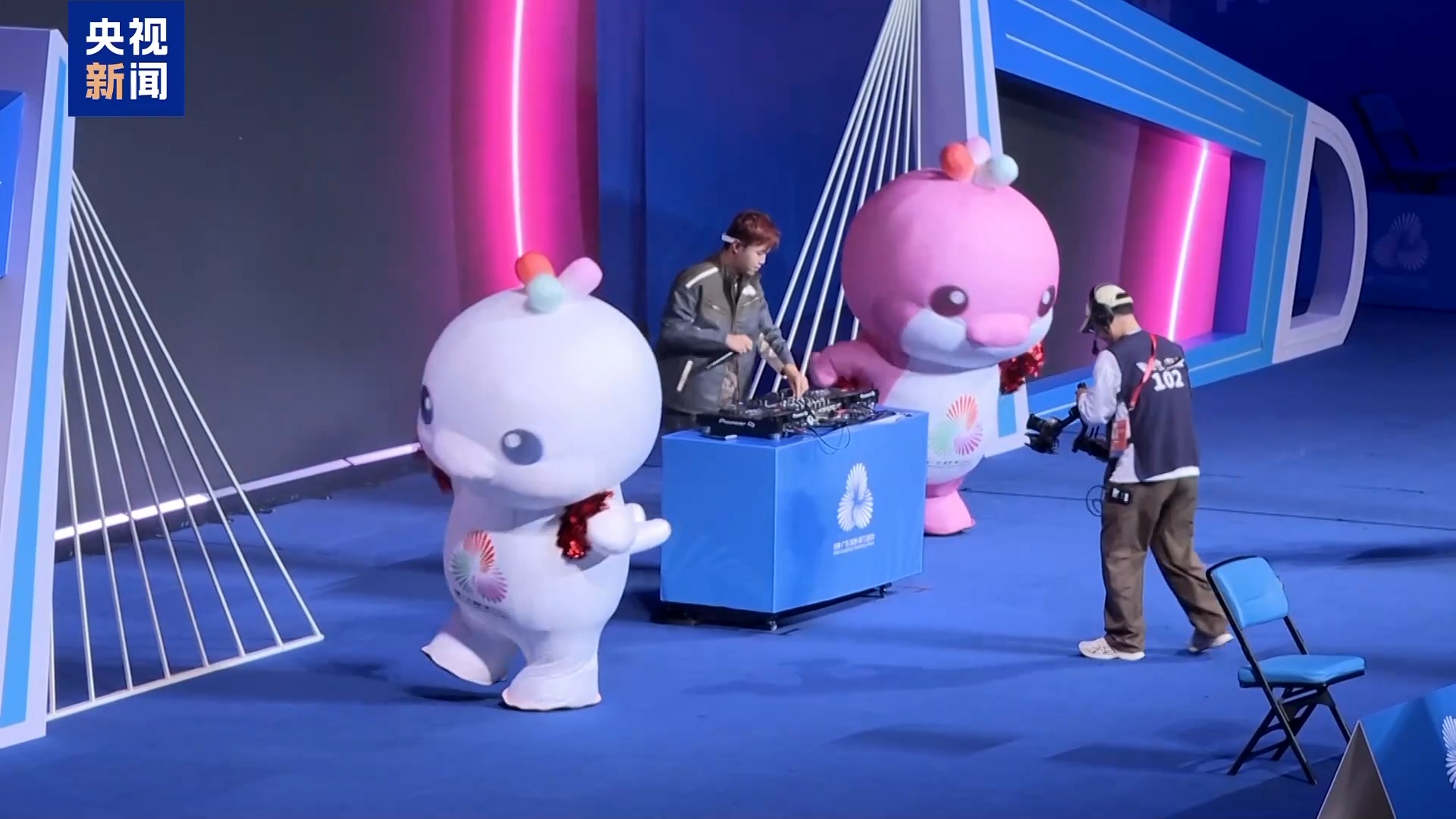 除了開幕式上的布偶吉祥物,體育館里的充氣吉祥物扮演者,則是各個(gè)場館的大學(xué)生志愿者。相比于厚重的毛絨材質(zhì)玩偶服,志愿者的充氣服裝更顯復(fù)雜。不過,觀眾不太能看出其中的差別。