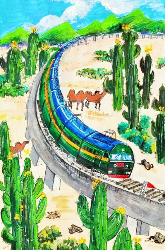 回家的路上,我翻著爸爸收藏的老照片:黑白照片里是詹天佑設(shè)計(jì)的京張鐵路;彩色照片中,嶄新的京張高鐵穿越居庸關(guān)隧道,智能列車自動(dòng)駕駛,外國人都豎起大拇指。爺爺常說“鐵路是國家的脊梁”,如今,這脊梁挺得筆直,載著14億人的夢想飛馳。
