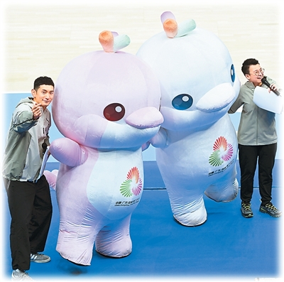 第十五屆全國運(yùn)動(dòng)會(huì)吉祥物與觀眾互動(dòng)。