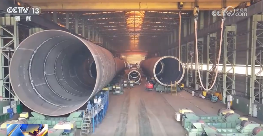 在山東蓬萊這家海洋重工企業(yè)的生產基地,記者看到,巨型風電樁基從廠區(qū)貨場直接運抵碼頭裝船出口。這種無縫銜接的“碼頭直裝”新模式,讓產品不再受限于公路運輸瓶頸。