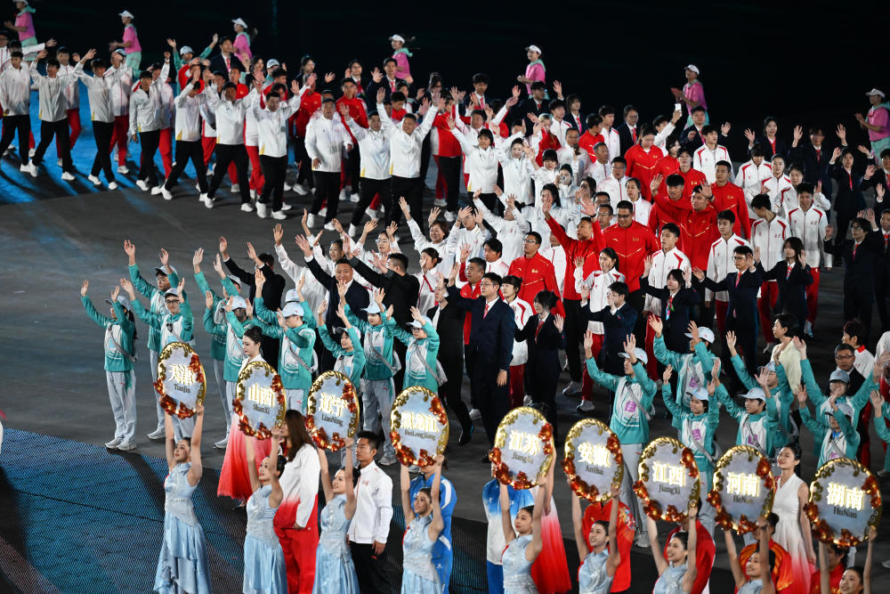 漫天星輝閃耀時(shí),萬(wàn)千豪情競(jìng)風(fēng)流。馬龍、潘展樂(lè)、蘇炳添、王霜……熟悉的面孔接連出現(xiàn),來(lái)自五湖四海的運(yùn)動(dòng)員、教練員和裁判員一同入場(chǎng)。