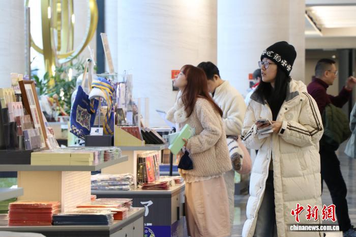 11月27日,游客在新疆博物館挑選“五星出東方利中國(guó)”系列文創(chuàng)產(chǎn)品。 茍繼鵬 攝
