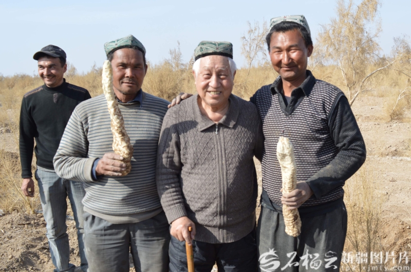 2016年劉銘庭(中)和種植肉蓯蓉的群眾合影。新疆圖片庫供圖