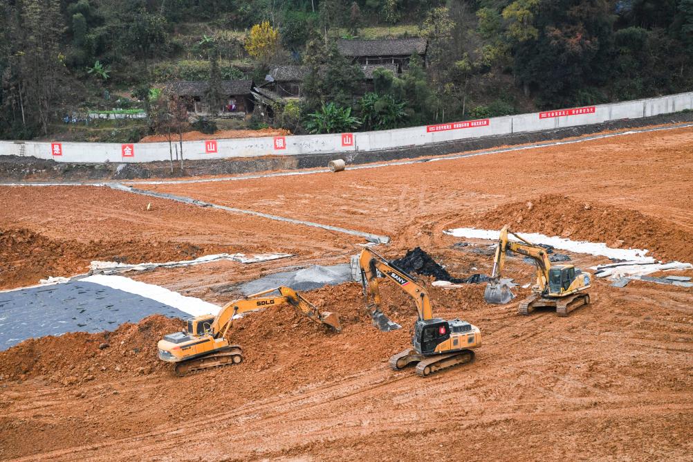 這是2023年12月15日在重慶市秀山縣溶溪鎮(zhèn)拍攝的武陵電解錳渣場綜合治理和生態(tài)修復(fù)作業(yè)現(xiàn)場。新華社記者 王全超 攝