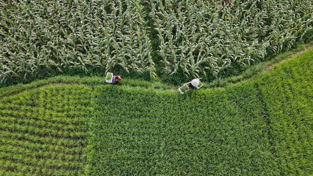 2022年7月7日,在重慶市秀山土家族苗族自治縣溶溪鎮(zhèn)柳水村,村民在搬運辣椒(無人機照片)。新華社發(fā)(胡程攝)