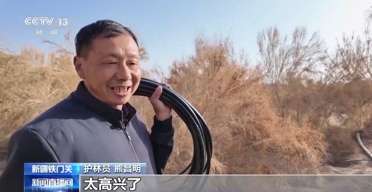 眼下這個季節(jié),正是冬季巡林最忙碌的時候,新疆鐵門關(guān)市營盤鎮(zhèn)53歲的護林員熊昌明,每天早晨都會和同事在泵房會合,一起去檢修梭梭林里的滴灌帶。