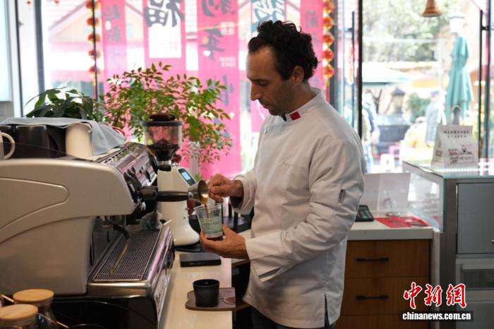 2025年1月13日,李逍遙在烘焙店中制作咖啡?!×_婕 攝