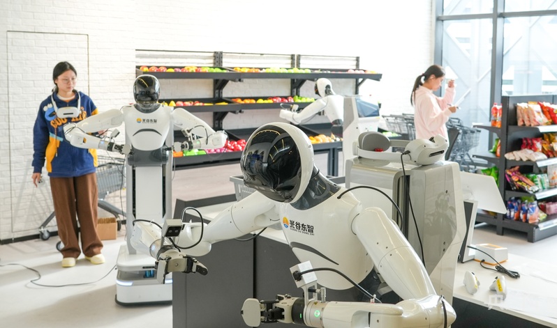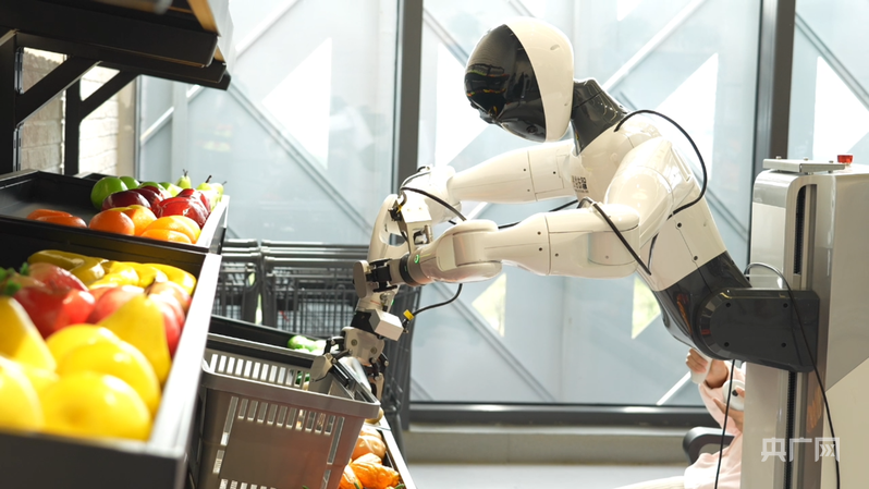 人形機器人在超市零售場景應用訓練(央廣網(wǎng)記者鄧子依 攝)