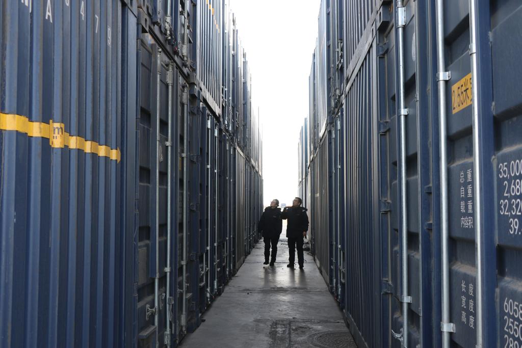 烏拉特海關(guān)關(guān)員巡查監(jiān)管作業(yè)場所進口煤炭倉儲情況。新華社發(fā)