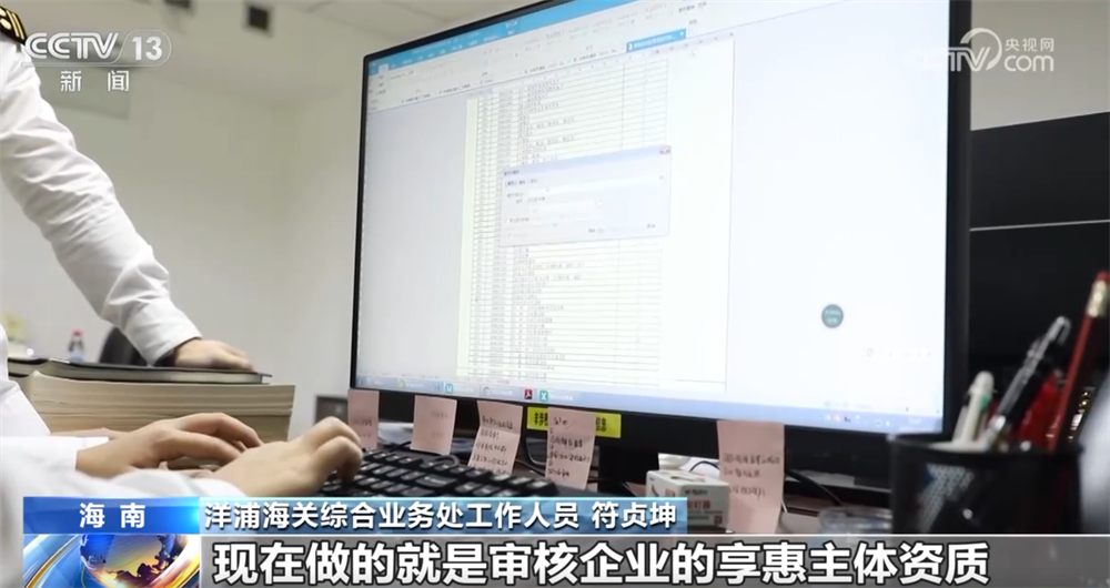 海南自貿(mào)港封關(guān)在即,進(jìn)口“零關(guān)稅”商品覆蓋范圍將從目前的1900個(gè)稅目擴(kuò)大到約6600個(gè)稅目……符貞坤的主要工作就是負(fù)責(zé)加工增值免關(guān)稅相關(guān)業(yè)務(wù)的審核,這一系列政策對(duì)于他所在轄區(qū)內(nèi)的企業(yè)也帶來(lái)了更多利好。