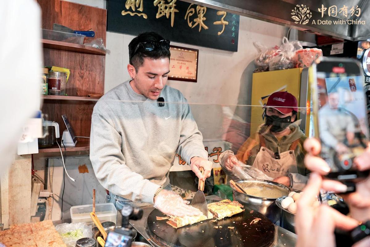 在古文化街,國(guó)際采訪團(tuán)的外國(guó)朋友們學(xué)習(xí)了捏泥人,體驗(yàn)了皮影戲表演,還親手制作并品嘗了正宗的天津煎餅,沉浸式感受了一把好吃又好玩的天津范兒。