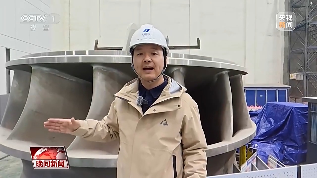 水電站究竟是如何發(fā)電的?記者身后就是發(fā)電機組最關(guān)鍵部件之一的轉(zhuǎn)輪,澎湃的高壓水流從190米的高處沖擊下來,推動轉(zhuǎn)輪高速旋轉(zhuǎn)。它1分鐘通過的水量近2萬立方米,能夠灌滿大概8個標準游泳池,可滿足超過4萬個三口之家一年的用電需求。